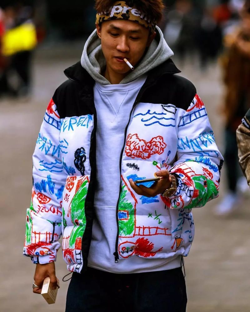 如果硬要穿羽绒服,就该套上有设计感花纹或是皮面材质,才能让你逃离「羽绒服很土」的指摘。
