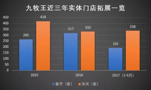 2017年依然延续上一年的关店步伐,前三季度开业门店192家,关闭338家。